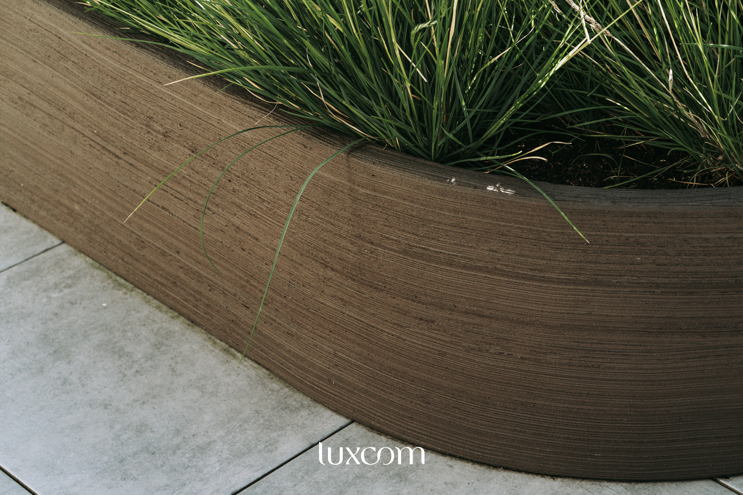 • Grote organische plantenbak met zitelement – Composique® Clay – RAL 070 70 10 – 9500 x 1900 x 600 mm