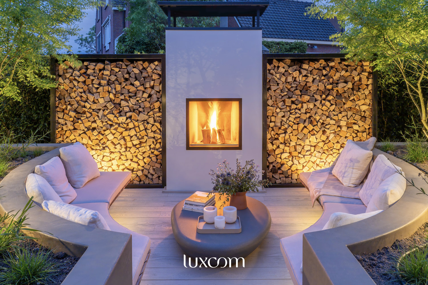 Deze organische Composique® plantenbak met geïntegreerde zitbanken brengt stijl en functionaliteit samen in één ontwerp.  De beplanting voegt een natuurlijke touch toe aan de moderne uitstraling. Het nodigt uit om gezellig met vrienden en familie rondom de haard te genieten en op te warmen.  Uiteraard is ook dit ontwerp weerbestendig en onderhoudsvrij.